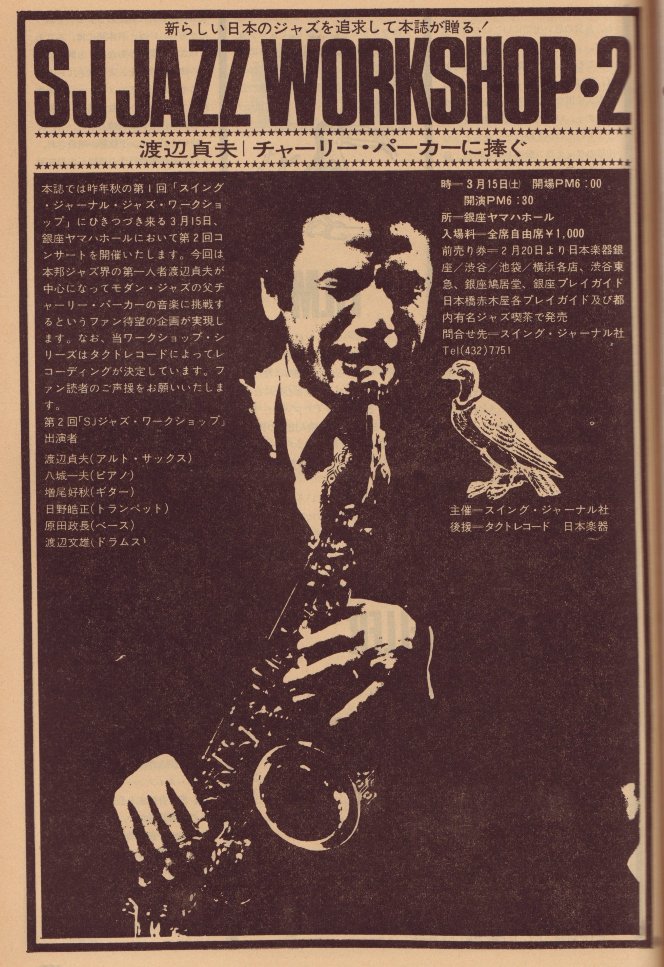 タクトが実況録音,LP化。(「SJジャズ・ワークショップ2/渡辺貞夫,Cパーカーに捧ぐ」XMS-10018)